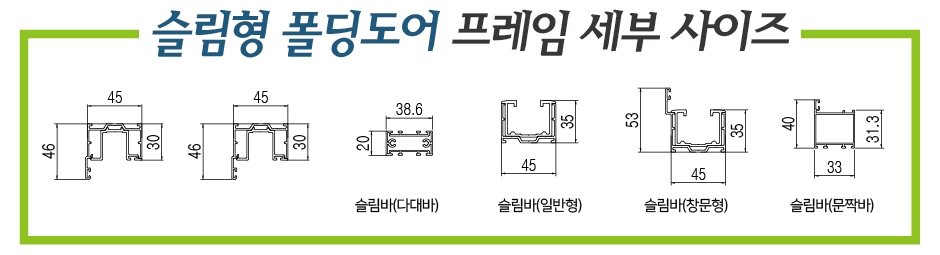 기존 폴딩도어 제품에서 알루미늄 프레임을 더욱 슬립하게 경량화 하여