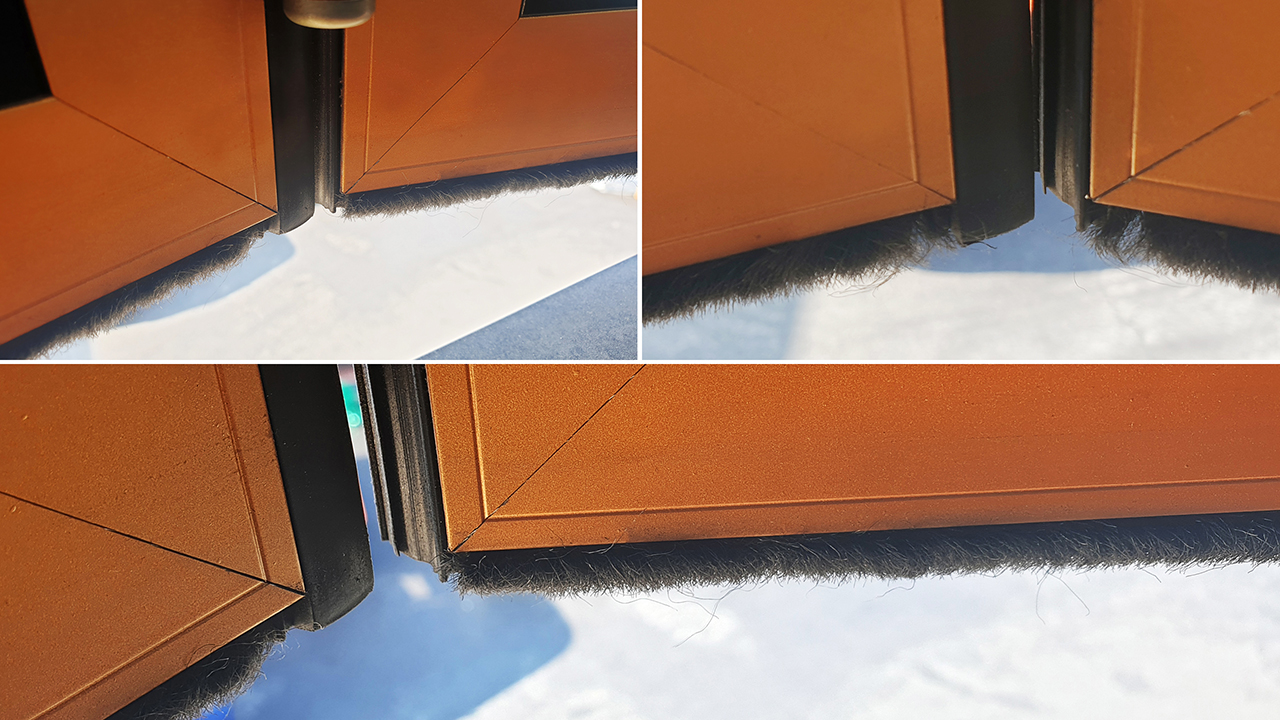 위의 사진처럼 문과 문 사이의 고무 가스켓으로 마감을 하며 모헤어의 틈이 생겼습니다.