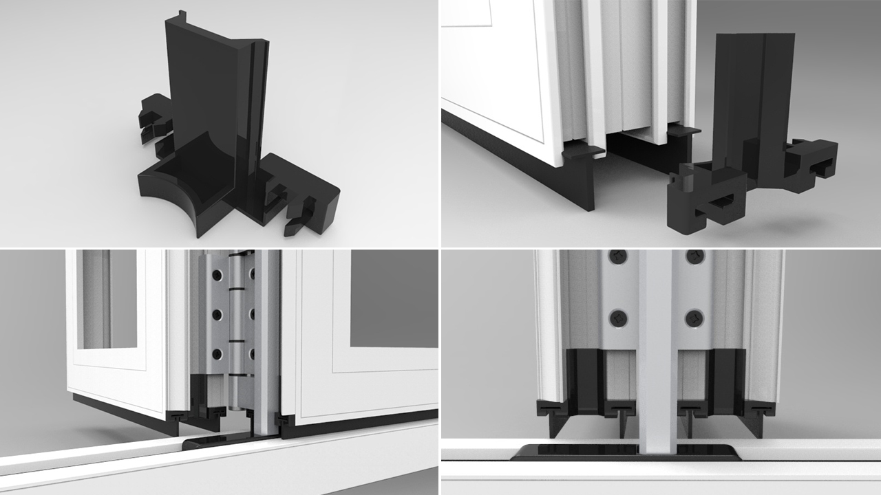 폴딩도어 프레임 하부에 부착하는 부자재로 외부의 기온 / 소음 / 각종 먼지 또는 벌레 등의