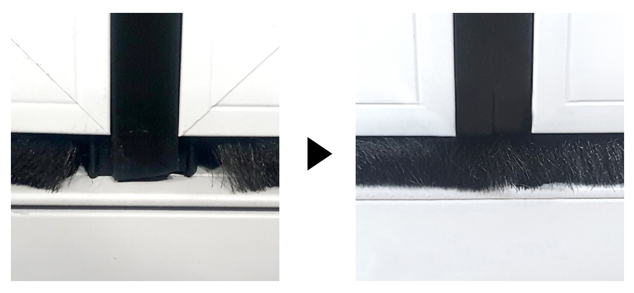 하부에 장착되는 모헤어 벌어짐과 그로 인해 작은 틈새가 생깁니다.