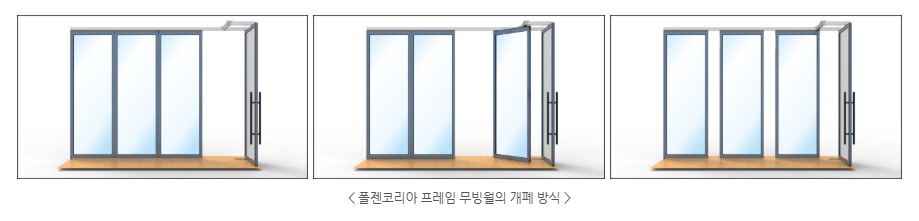 무빙월은 폴딩도어와 달리 도어를 한 장씩 개별적으로 꺾어 격납할 수 있으며,