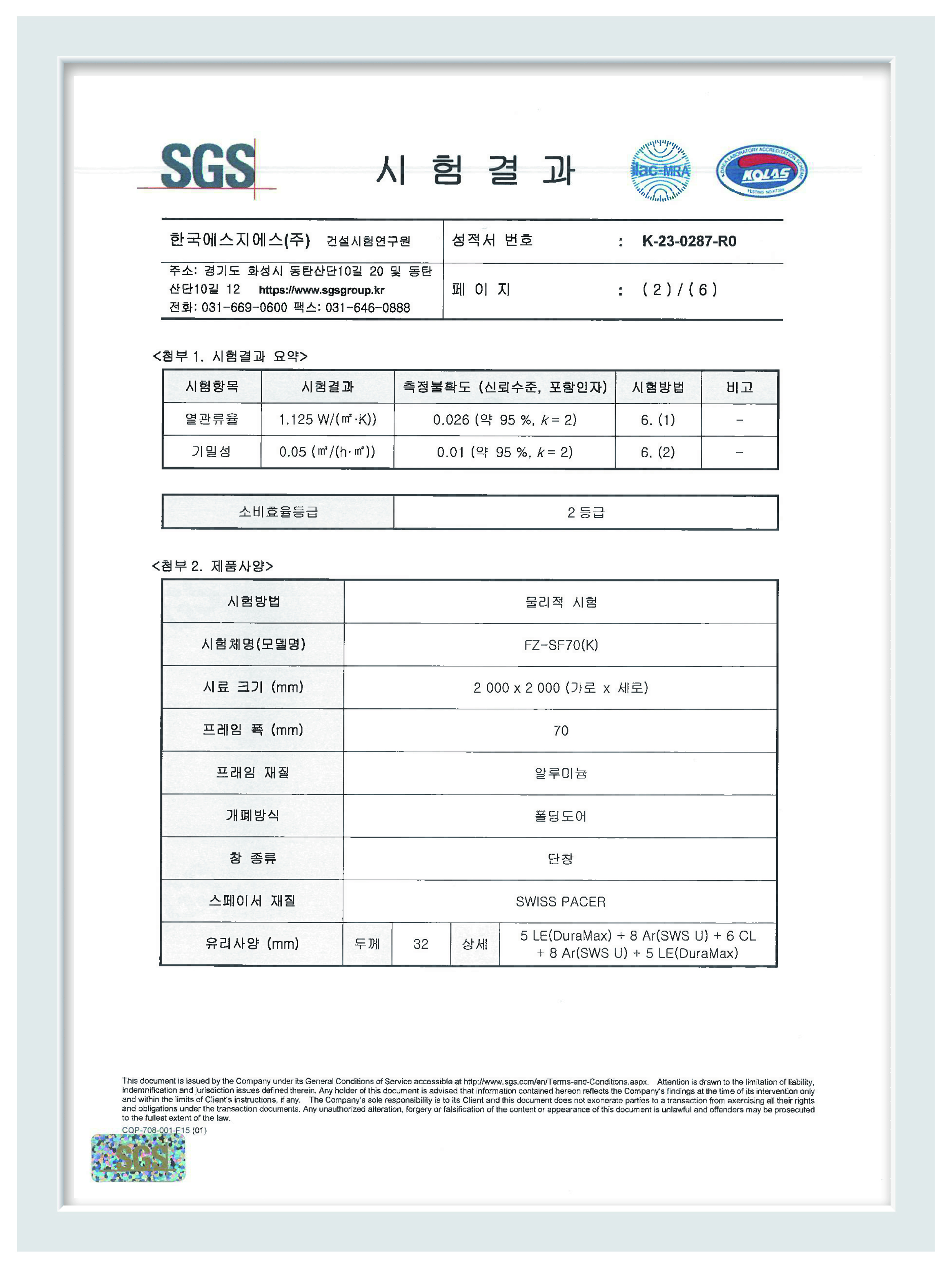 폴젠코리아 유리사양별 최고의 단열 시험성적서 보유!!
