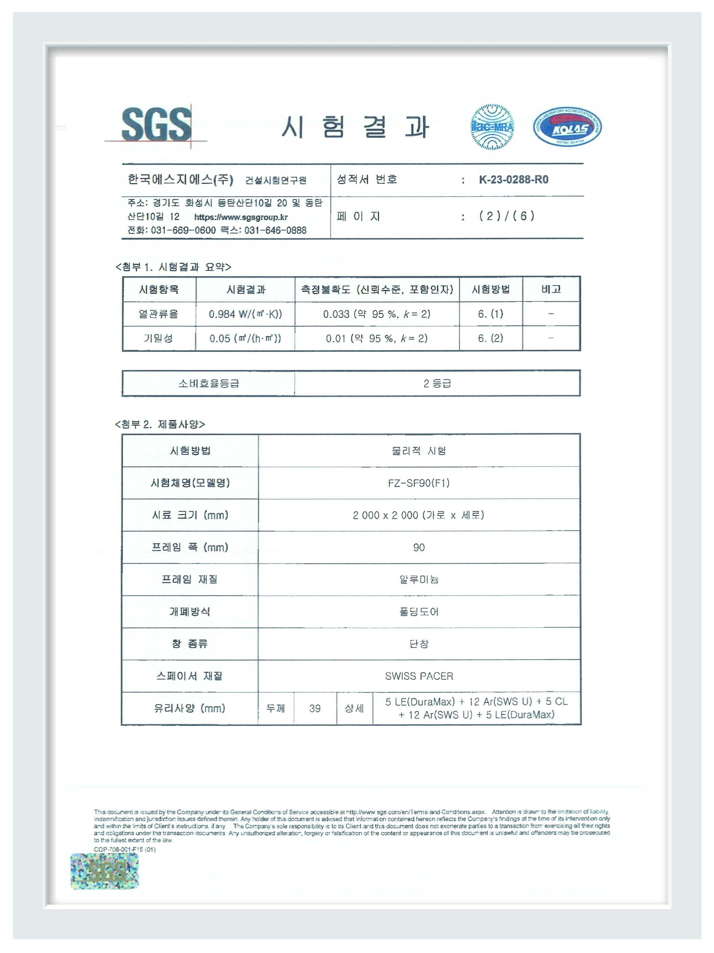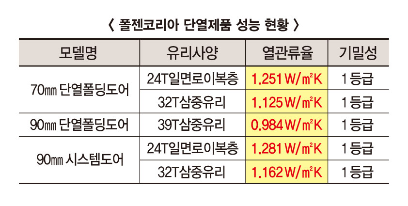 폴젠코리아, 유리사양별 최고의 단열 시험성적서 보유!!