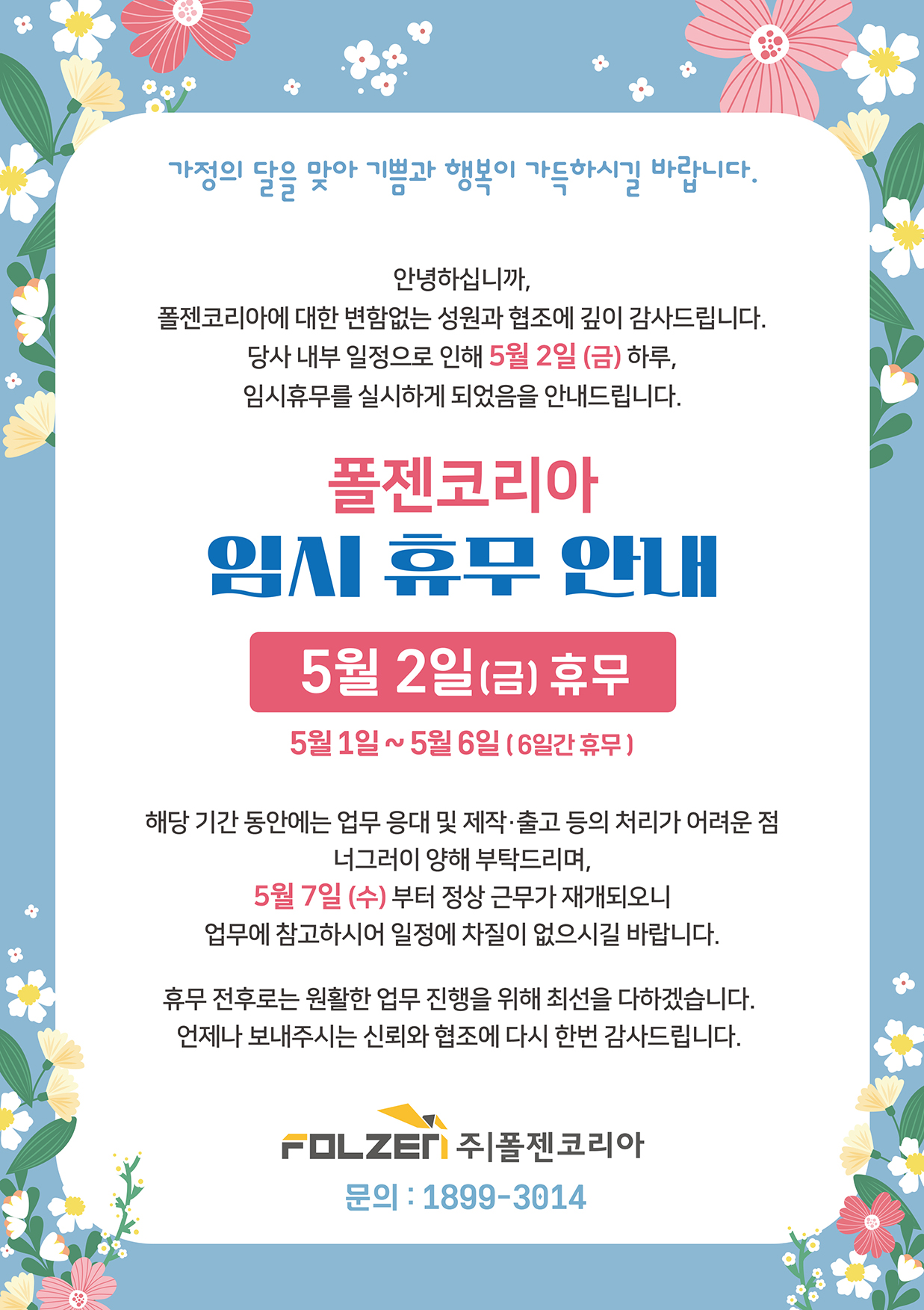 폴젠코리아, 5월 임시 휴무 일정을 안내드립니다.