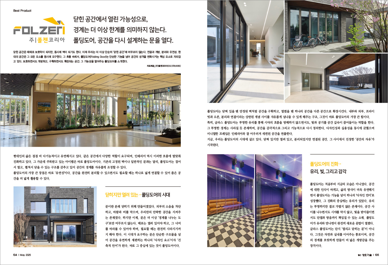 폴젠코리아의 기술력과 디자인 철학이 월간 창호기술 5월호에 소개되었습니다.