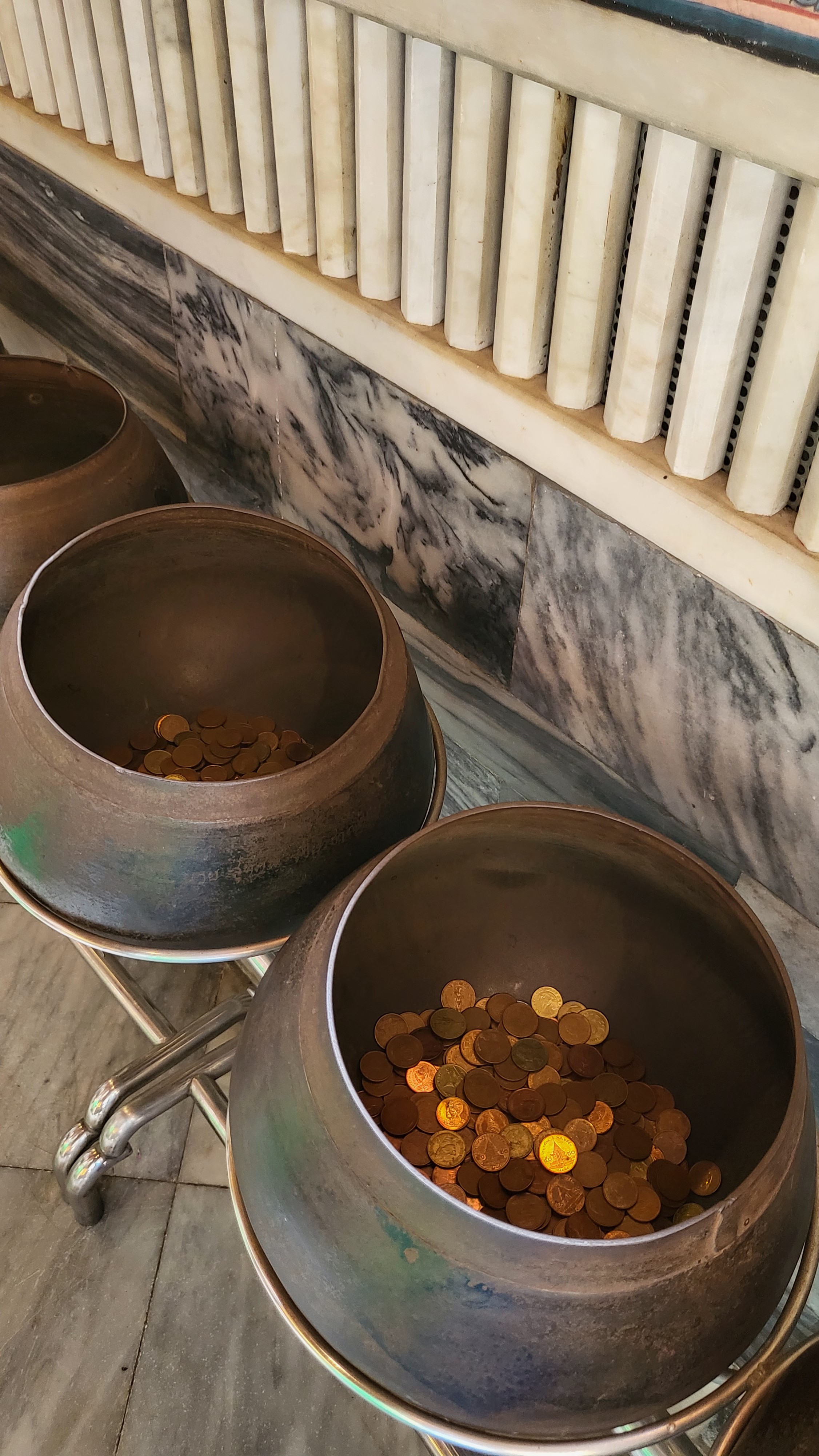 와불상 뒷편에 줄지어있는 둥근 놋쇠 항아리인데요.