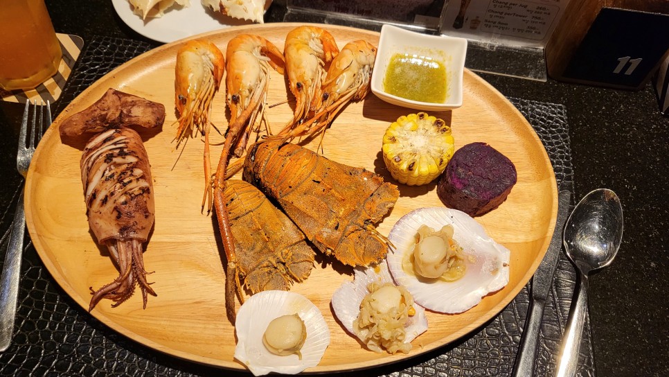 맛있는 씨푸드 음식들로 식사를 한 후