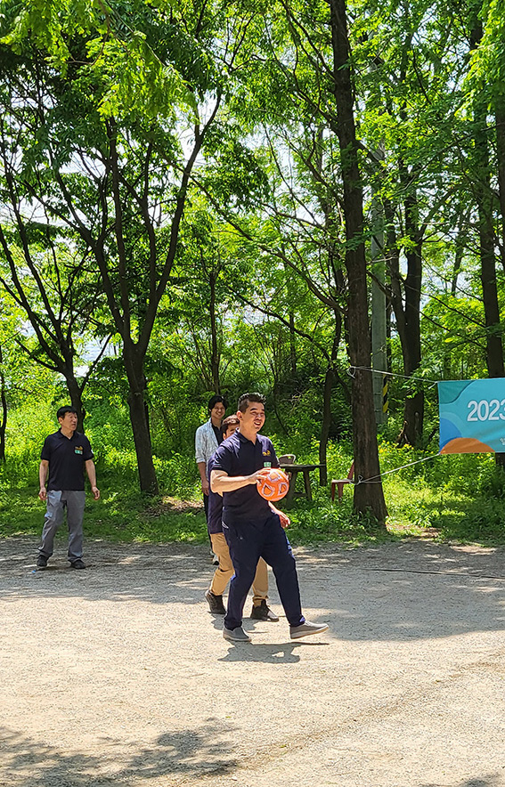 첫번째 게임은 남자 직원들의 족구였습니다~