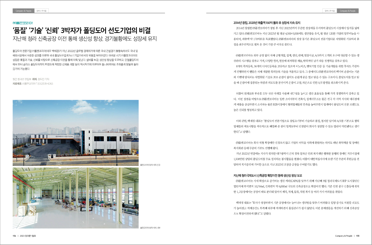 폴젠코리아, 월간 창과문 2023년 1월호_ 품질, 기술, 신뢰와 업계 성장세 기사 등재!