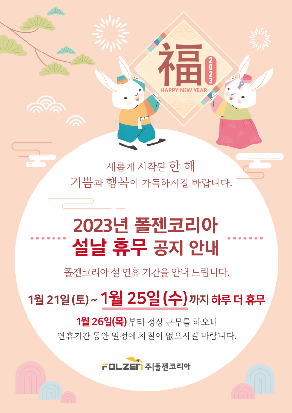 폴젠코리아, 2023년 설날 연휴 휴무 안내입니다!