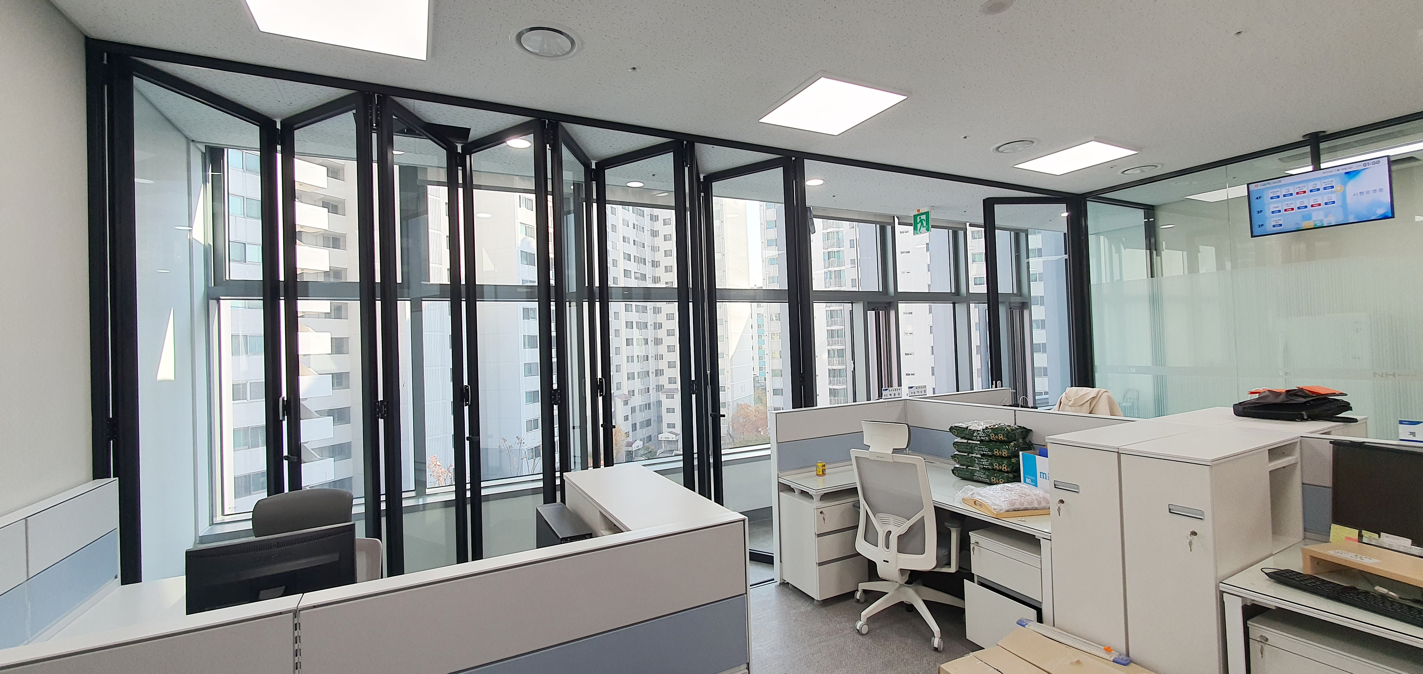 완공과 함께 폴딩도어 설치가 완료되어 사무실이 입주를 시작하였습니다.