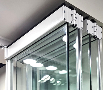 글라스폴딩도어를 안전하고 완벽히 구동하기에 최적합화된 프레임. 상/하부에 힘을 효과적으로 분산하여 도어를 부드럽게 구동할수있게 함